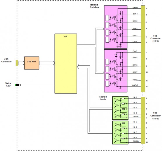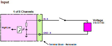 module is comprised of 8, low-side power MOSFET switches, and 8 high-voltage inputs.